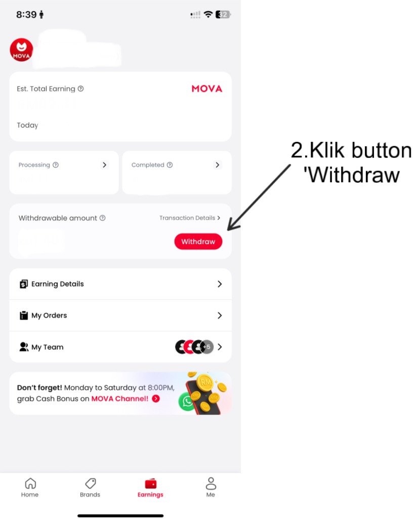 Berikut adalah cara membuat withdrawal masuk ke akaun bank atau e-wallet:
